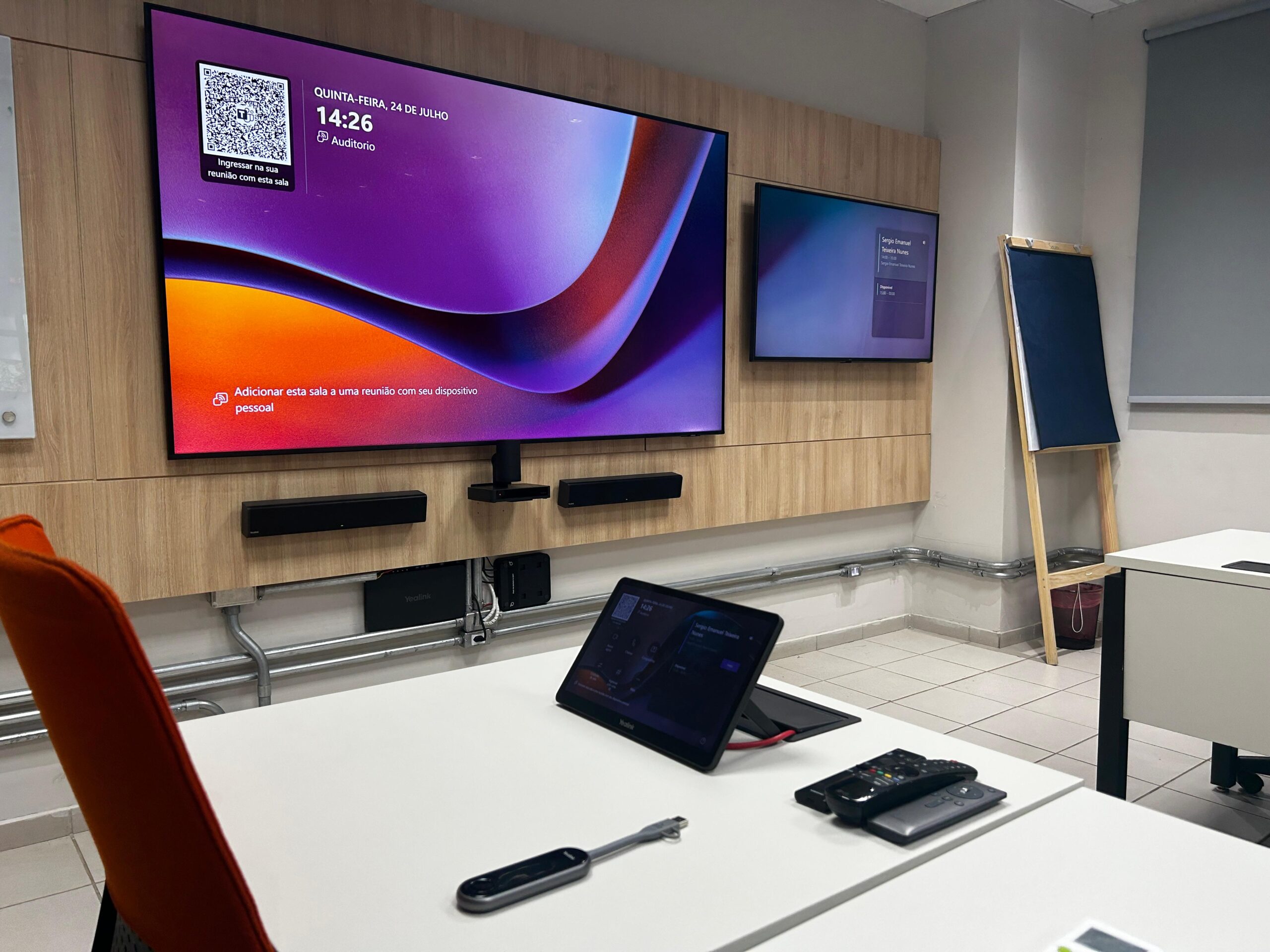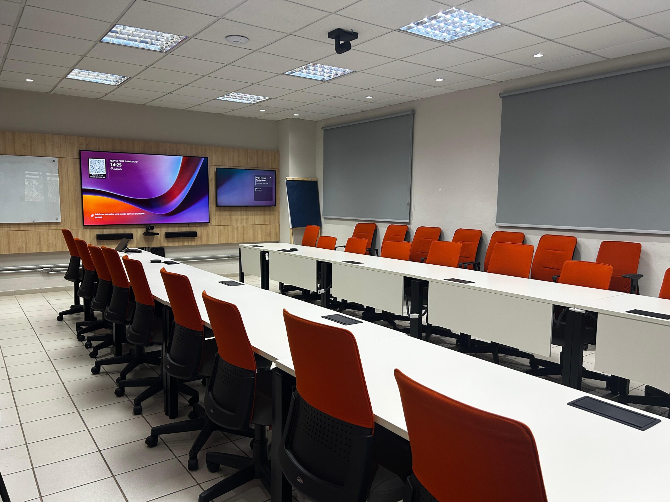 Com a instalação, a empresa passou a contar com um auditório preparado para reuniões, treinamentos e apresentações híbridas de alto nível.