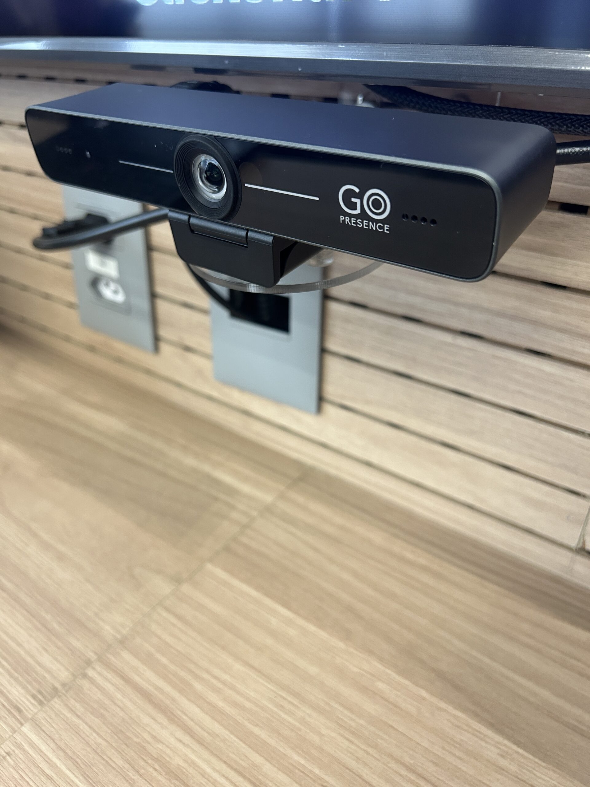 • 2 câmeras GoPresence Smart 4K, garantindo enquadramento inteligente e imagens de alta definição para reuniões híbridas e apresentações.