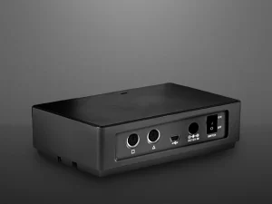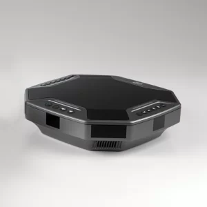O microfone, com design compacto e elegante, alia funcionalidade e discrição, integrando-se perfeitamente à estética corporativa. Possui um alto-falante potente, 4 microfones omnidirecionais com até 6 metros de alcance e cancelamento de ruídos, além de controle da reunião, Bluetooth e saídas para microfones adicionais. Conta também com LED indicativo de funções para feedback visual instantâneo.